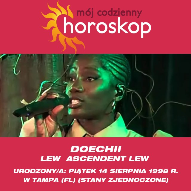 Przygotuj się na wibracje z nieziemską energią Doechii! Urodzona 14 sierpnia 1998 roku w słonecznym Tampa na Florydzie, ta wspaniała Lwica wnosi olśniewający blask w wszystko, czego się dotknie. Z jej żywą osobowością i kreatywnym stylem, nic dziwnego, że świeci tak jasno jak słońce – w końcu Lwy to naturalne artystki! Jej entuzjastyczny urok i magnetyczna obecność rozświetlają każdy pokój, ucieleśniając płomienny duch jej znaku zodiaku. Gdy zagłębimy się w astrologiczny portret Doechii, odkryjemy wyjątkowe cechy i kosmiczne wpływy, które inspirują jej sztukę i sukces. Odkryjmy razem magię jej gwiaździstej karty!